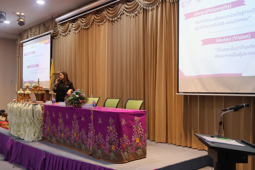 วันอังคารที่ 23 ธันวาคม 2568 ผู้ช่วยศาสตราจารย์ ดร.กรกนก โภคสวัสดิ์ คณบดีคณะเทคโนโลยีการจัดการ กล่าวต้อนรับ คณะผู้บริหาร คณาจารย์ บุคลากร เข้าร่วมการประชุมเพื่อการขับเคลื่อนงานวิจัยและงานบริการวิชาการที่ก่อให้เกิดรายได้คณะเทคโนโลยีการจัดการ ณ ห้องประชุมศรีสรรพวิทย์ (MT 306) อาคารศรีสรรพวิทย์ คณะเทคโนโลยีการจัดการ และมีวิทยากรผู้ทรงคุณวุฒิร่วมเสวนา ได้แก่ ผู้ช่วยศาสตราจารย์ ดร.อภิรักษ์ สงรักษ์ รองอธิการบดี